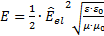 4⋅π⋅10-7 V⋅s / (A⋅m) die magnetische Feldkonstante und μr die Permeabilitätszahl. Wenn anstelle des Scheitelwerts der elektrischen Feldstärke deren Effektivwert Eel betrachtet wird, dann gilt