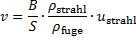 Der Massenstrom des Fugenstoffs ist aus Gleichung (23) bekannt, so dass die Gleichheit der Ströme Fugenstoff – Schneidstrahl analog zu Gleichung (26) die die Bilanzgleichung (60) ergibt.