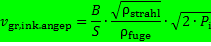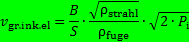 Aus Gleichung (54) ergibt sich der kritische Querschnitt der Lavaldüse, dessen Durchmesser sich nach Expansion des Strahls zur Fugenbreite B aufweitet, Gleichung Gleichung (56)