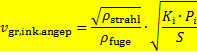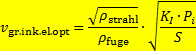 Die Erhaltungssätze für Impuls und Energie führten zu der Aussage, dass die Massenströme des Schneidstrahls und des Fugenstoffs gleich sind, wenn die Schneidstrahldurchmesser an die Fugenbreite angepasst sind, Gleichung (23). Diese Aussage ist unabhängig von weitern Bedingungen. Daher gilt sie auch für kompressible Schneidstrahlen. Für die angepassten Durchmesser wird im ersten Schritt die Grenzgeschwindigkeit für das Schneiden ermittelt.