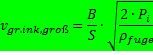 In dieser Gleichung ist Pa der bekannte Umgebungsdruck, siehe Bild 10. Mit Kenntnis von Pein und dem Festlegen der Schichtdicke des ausströmenden Fluids auf die Fugenbreite wird entsprechend der Argumentation zu den Gleichungen (42) bis (44) vorgegangen. Mit Gleichung (61) führen diese zur Grenzgeschwindigkeit beim Laserstrahlschneiden mit kompressiblen Schneidstrahlen großer Querschnitte, Gleichung (65)